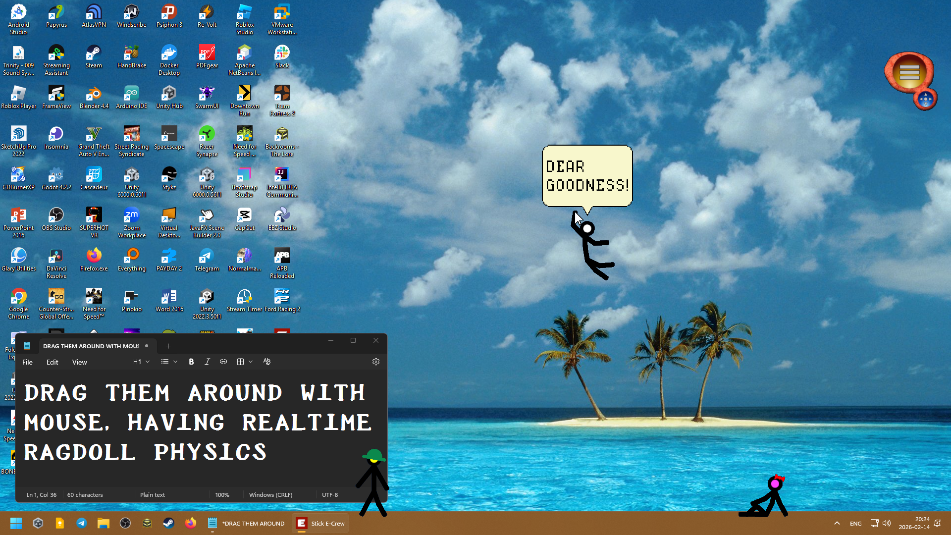You can ask them to do an animation for you, drag them around with your mouse, or hit them with other programs' windows. They have real-time ragdoll physics!